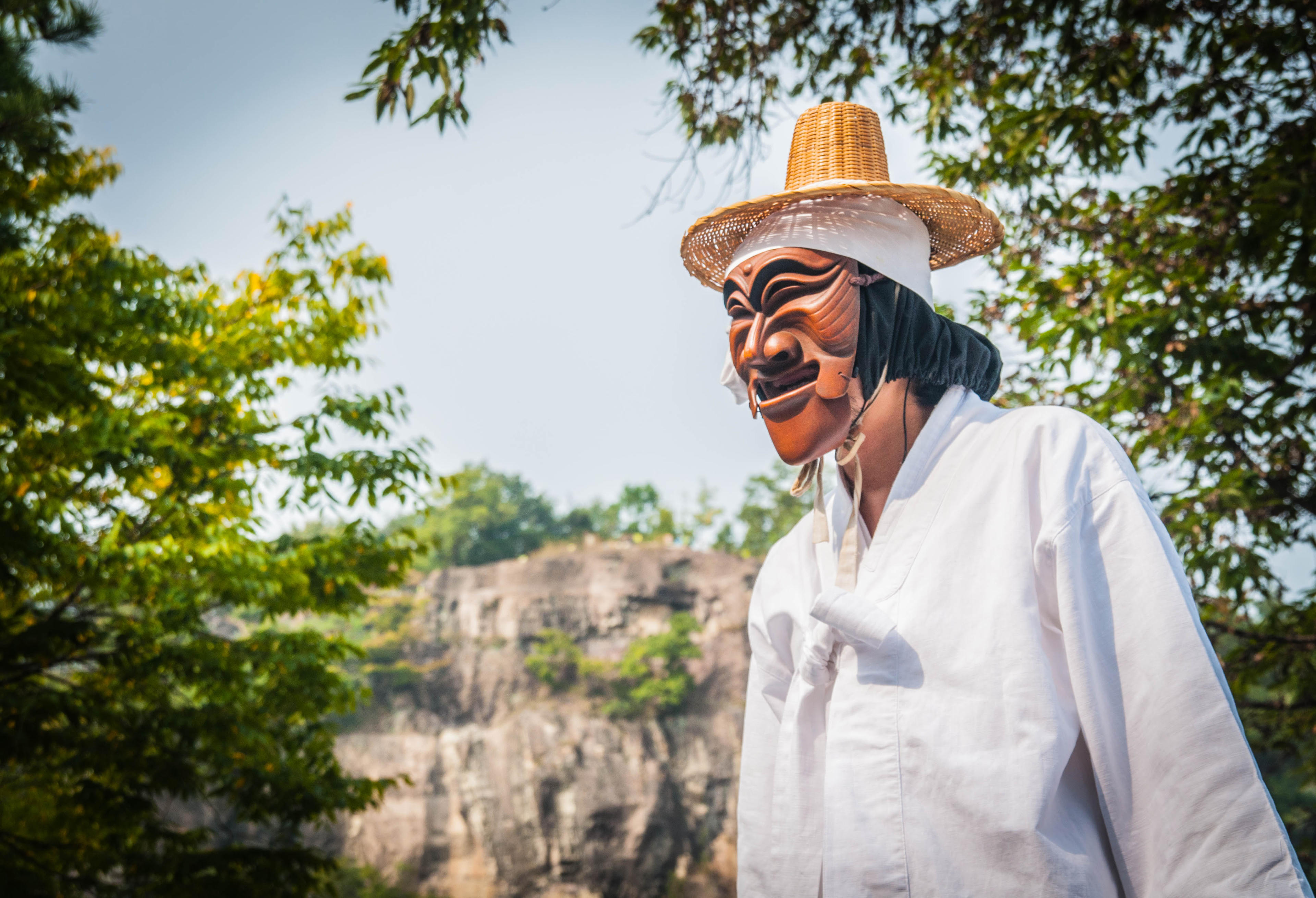 Người dân sẽ tổ chức diễu hành với trang phục Hanbok truyền thống, tay cầm gậy có khi mang mặt nạ hoặc không, nhằm xua đuổi tà thần và cầu xin một vụ mùa mới may mắn cũng như không bị cô hồn quấy phá.