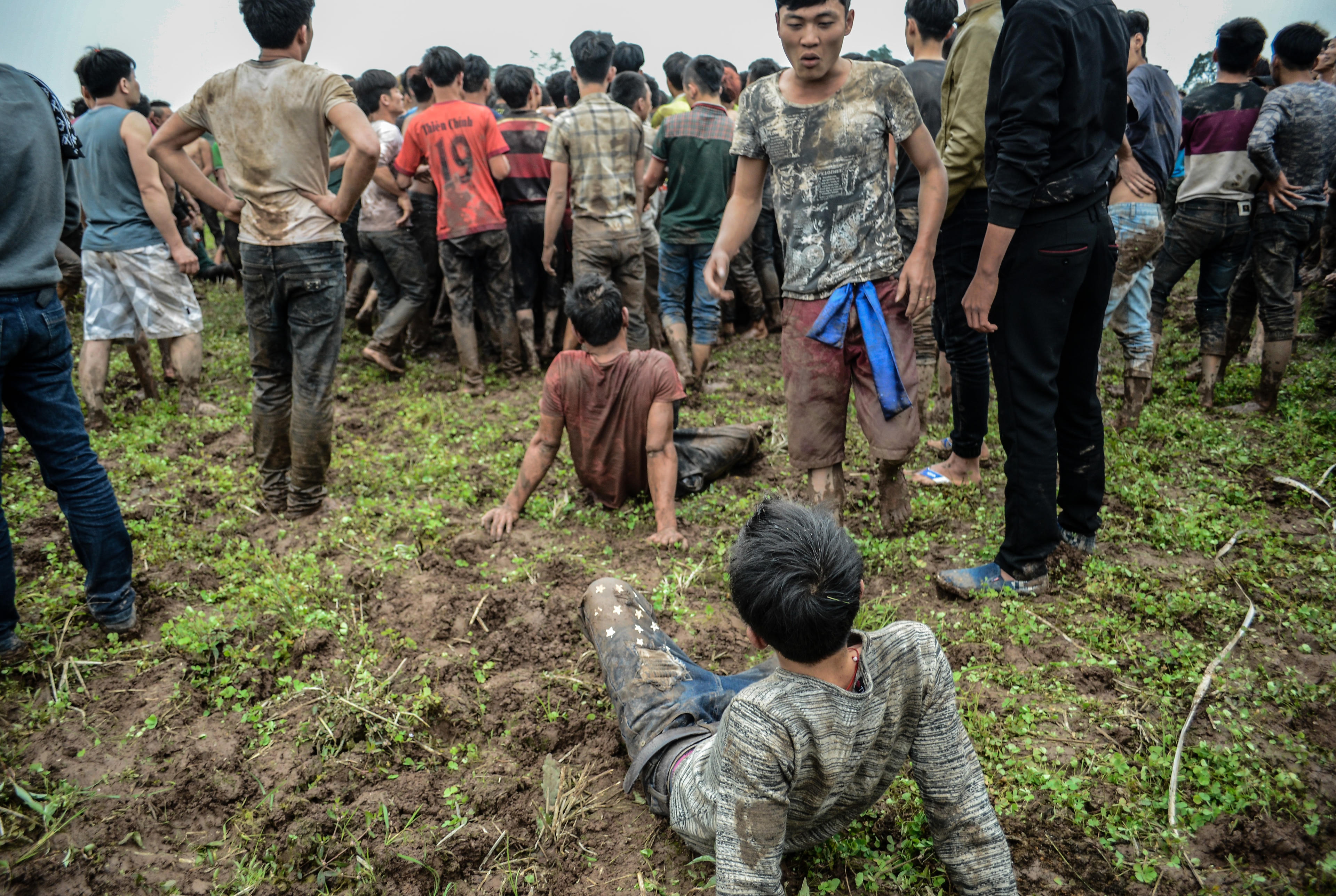 Nhiều thanh niên mệt nhoài sau hàng giờ cố gắng giành quả phết.