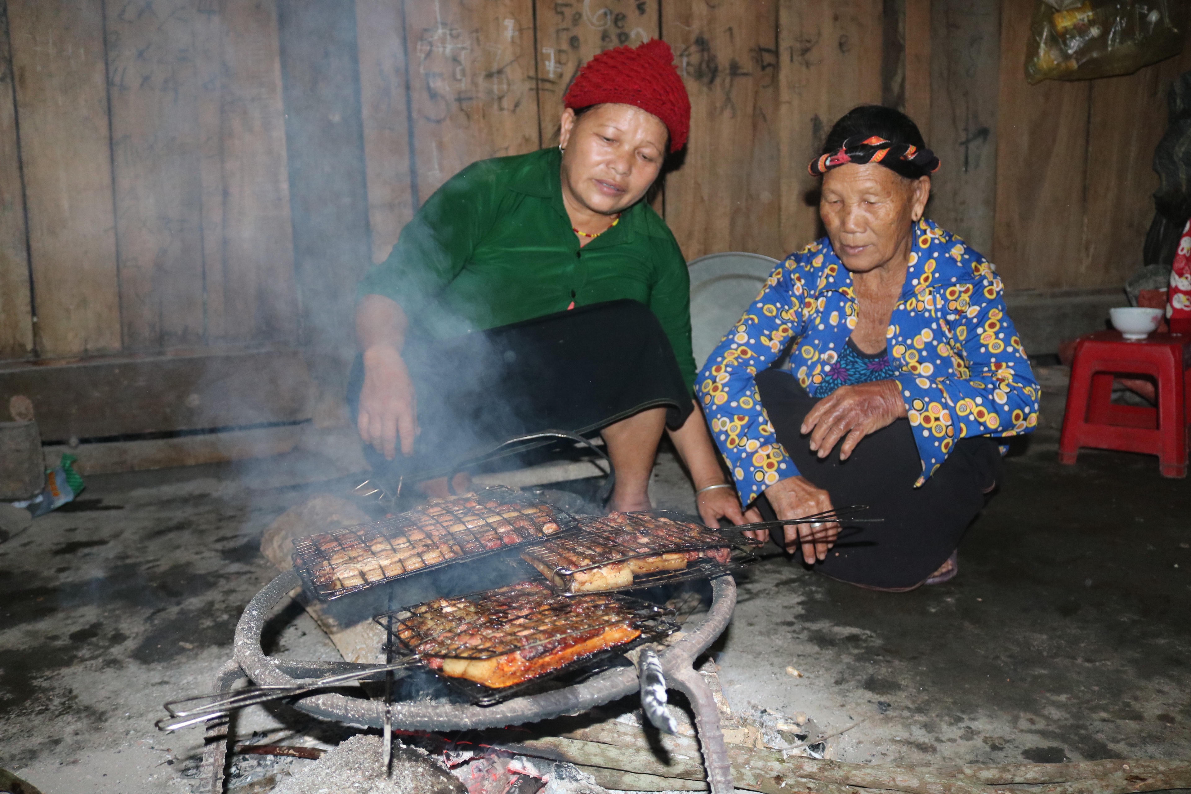 Khói từ những căn nhà sàn tỏa ra bởi nướng những miếng thịt vàng ươm, thơm phức hương rượu nồng nàn lan tỏa, hòa quyện vào nhau trong không khí ngày xuân ấm áp rộn ràng.