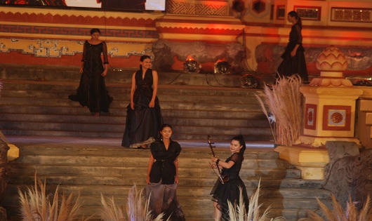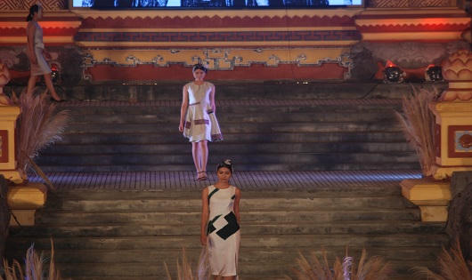 Đêm thời trang được diễn ra tại sân khấu Bia Quốc Học Huế, được dàn dựng công phu, ánh sáng sân khấu hoành tráng. Trong không gian cổ kính và hiện đại, được trang hoàng bằng những bông cỏ lau, với sự minh họa của gần 20 nghệ nhân nghề dệt, lụa tơ tằm…