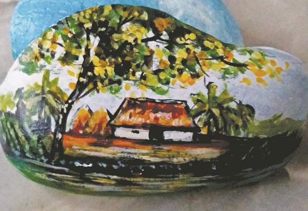 Bước chân lãng du những buổi chiều đi dưới cát biển, nhìn những hòn đá có nhiều hình thù đẹp mắt nên anh nhặt về. Những lúc rảnh, anh lại đem cọ ra hí hoáy vẽ thử lên đó những hình thù anh tưởng tượng được. Và đam mê đã sinh ra những ý tưởng mới lạ… anh mạnh dạn vẽ nhiều hơn trên đá và giới thiệu với bạn bè về những tác phẩm của mình.