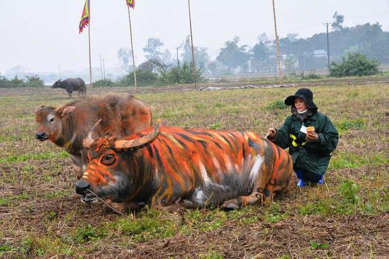 Tại hội thi, những họa sỹ tham gia thi tài có thể thỏa sức sáng tác trên mình trâu. Những chú trâu chỉ biết cày ruộng, kéo xe, gặm cỏ… bỗng chốc trở thành những "tác phẩm nghệ thuật", khoác lên mình tấm áo mới đầy màu sắc.