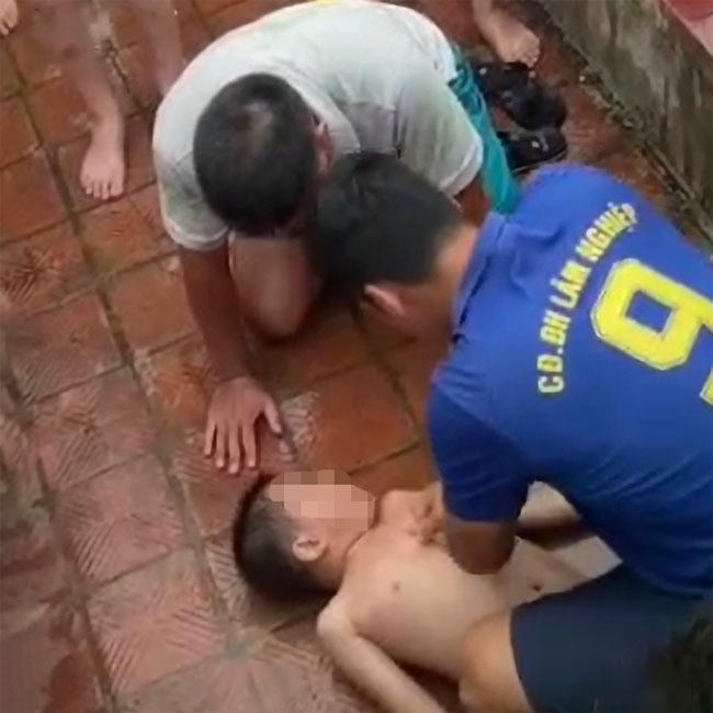 Ngay lập tức, bé B được 2 thầy giáo dạy bơi cấp cứu ép tim, thổi ngạt liên tục và sơ cứu đúng cách, không làm theo cách sơ cấp cứu đuối nước sai lầm mà mọi người vẫn thường mắc phải là dốc ngược trẻ lên chạy, làm mất thời gian vàng để cứu sống trẻ. Sau cấp cứu khoảng 15 phút, trẻ có nhịp thở lại và được chuyển tới cơ sở y tế.