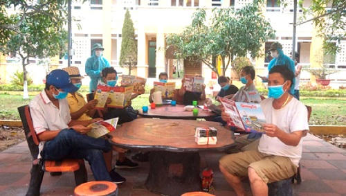 Buổi chiều tại cơ sở cách ly tập trung tỉnh Quảng Trị thật thanh bình. Dưới những vòm cây xanh mát, những người cách ly thư thả đọc sách. Cầm cuốn “Đắc nhân tâm”, chị Vũ Thị Bình, 36 tuổi (Đông Hà, Quảng Trị) cho hay: “Từ nhỏ, gia đình khó khăn, tôi đã bươn chải từ sớm. Năm 18 tuổi, tôi cùng bạn bè sang Lào mở nhà hàng ăn uống. Gần 20 năm trôi nổi xứ người, đầu tắt mặt tối, nấu nướng, bưng bê, dọn dẹp, tôi chẳng bao giờ có thời gian dành riêng cho mình. Bố mẹ tôi ốm, tôi về Việt Nam thăm đúng mùa dịch nên tôi được cách ly tại đây. Quanh năm phục vụ cho người khác, nay được các chiến sĩ giúp mình cơm 3 bữa, tôi có thời gian nghỉ ngơi thực sự. Nói thật, từ bé tới lớn, tôi rất lười đọc sách. Vào đây, thấy có thư viện mi ni với gần 1000 đầu sách, báo, tôi mừng lắm. Sẵn có thời gian nghỉ ngơi, tôi đọc sách. Trong tuần qua, tôi đã đọc 5 cuốn sách. Nhưng cuốn tôi thích nhất là “Đắc nhân tâm”. Tôi hiểu ra nhiều điều về ý nghĩa cuộc sống trong cuốn sách này”.