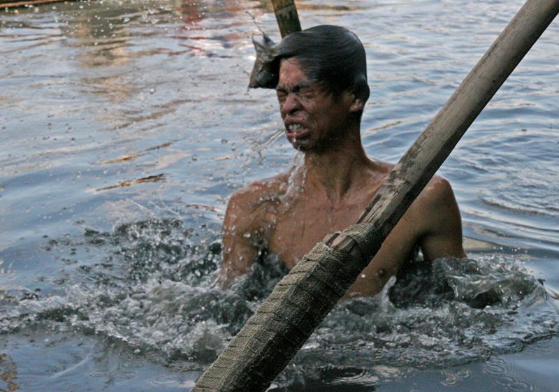 Cường chưa bỏ cuộc, hai vợ chồng vẫn lén ra giữa dòng đào bới, chuyển việc đãi chì sang làm đêm là chính. Là thợ lặn giỏi, dù đã vài lần phải đi cấp cứu khi đang lặn bỗng tê lạnh hay xì máu tai, vợ chồng Cường bám trụ đến khi cái xuồng nát vỡ thành mấy mảnh, cả hai mới thôi nghề.