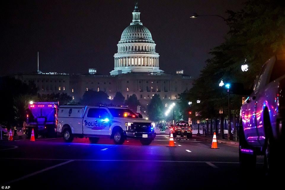 Một hàng rào màu đen cao 8 foot bao quanh tòa nhà có mái vòm màu trắng trong khoảng sáu tháng sau khi cuộc tấn công trở lại, 100 lính Vệ binh Quốc gia đang ở chế độ sẵn sàng và các quan chức an ninh đang thực hiện kiểm tra bổ sung đối với những du khách đến sân bay gần nhất của Washington trong nỗ lực ngăn chặn bạo lực.