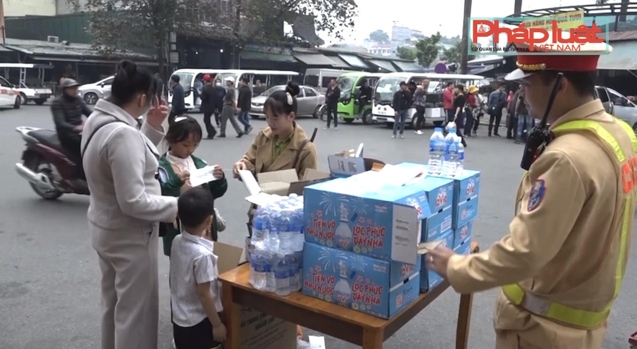 (PLVN) -Từ ngày 3/2/2023 (tức 13/1 âm lịch), Đội Cảnh sát giao thông, Công an thành phố Lào Cai đã triển khai chương trình phát khẩu trang và nước uống miễn phí cho người dân, du khách khi đến tham dự Lễ hội Đền Thượng.