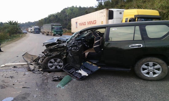 Thời điểm trên, xe ô tô hiệu Toyota Prado BKS 12A-048.39 khi đang di chuyển hướng thành phố Lạng Sơn về thị trấn Đồng Đăng, đến khu vực dốc Quan Tài bất ngờ va chạm với xe tải BKS 12C-02729 lưu thông ngược chiều.
