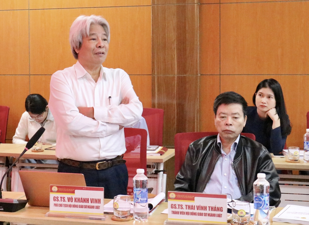 GS.TS. Võ Khánh Vinh, Phó Chủ tịch Hội đồng Giáo sư ngành Luật chia sẻ tại hội thảo |