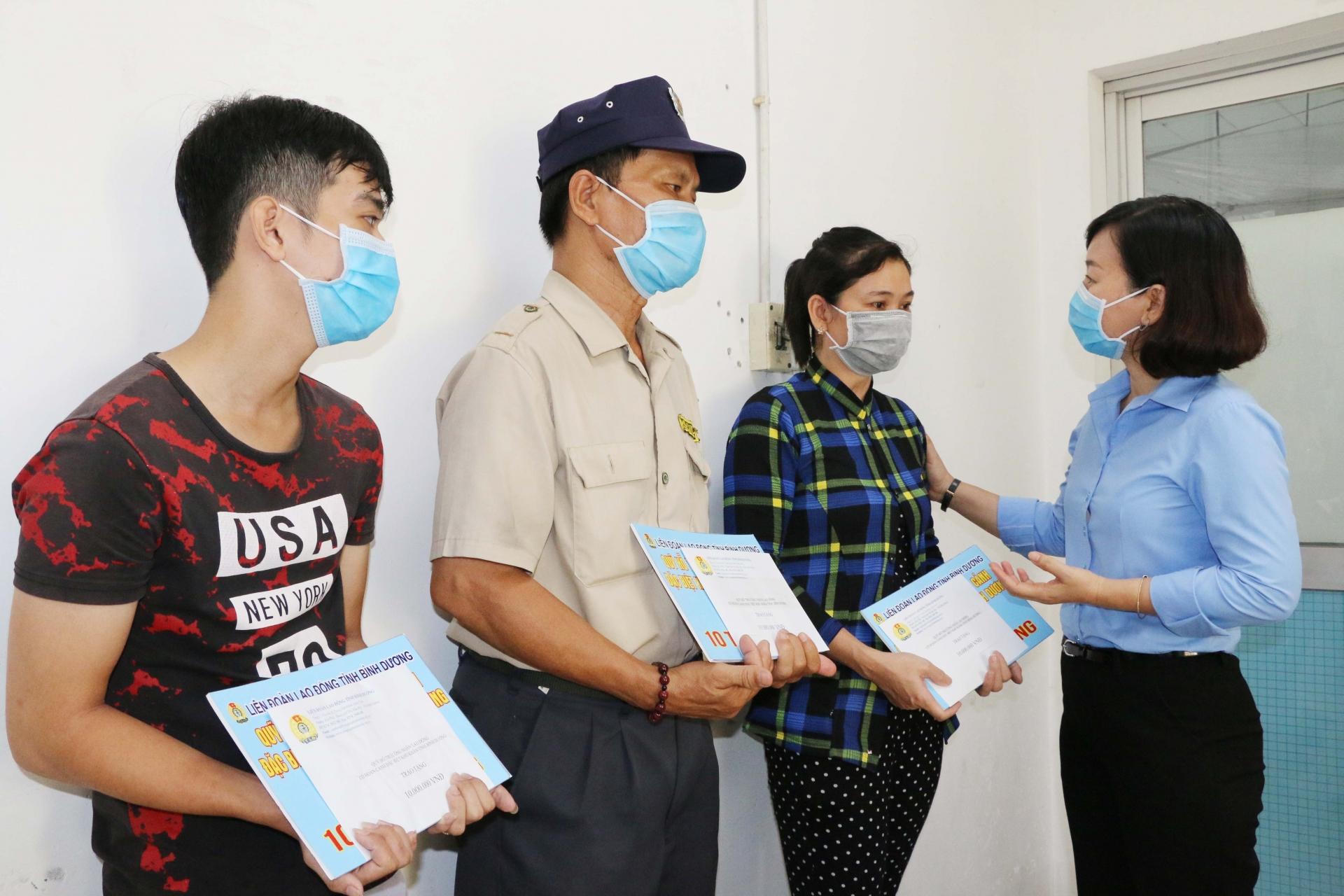 Đại diện Liên đoàn Lao động tỉnh Bình Dương trao quà cho công nhân lao động có hoàn cảnh đặc biệt khó khăn. Ảnh: congdoanbinhduong.org.vn