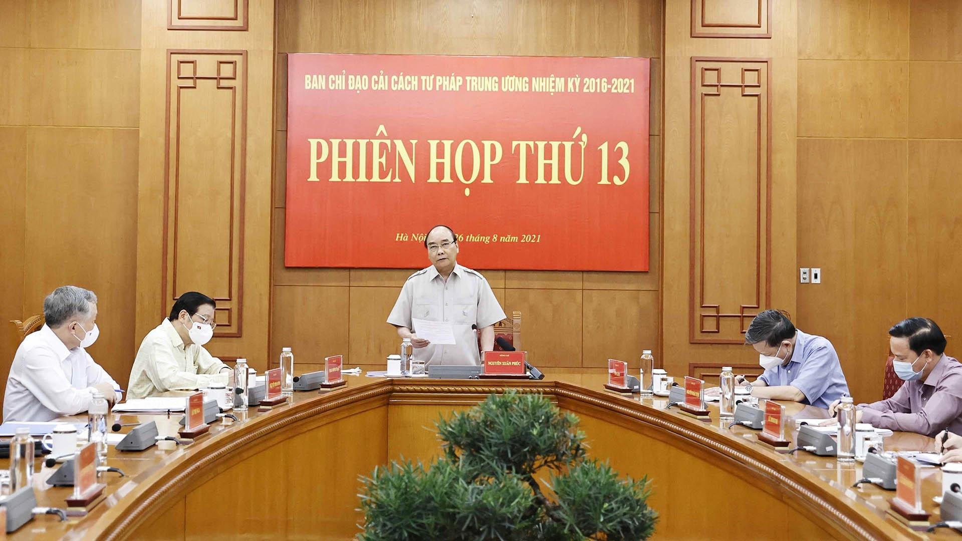 (PLVN) - Chủ tịch nước Nguyễn Xuân Phúc, Trưởng Ban Chỉ đạo Cải cách Tư pháp Trung ương nhấn mạnh tại Phiên họp thứ 13 của Ban Chỉ đạo sáng 26/8.
