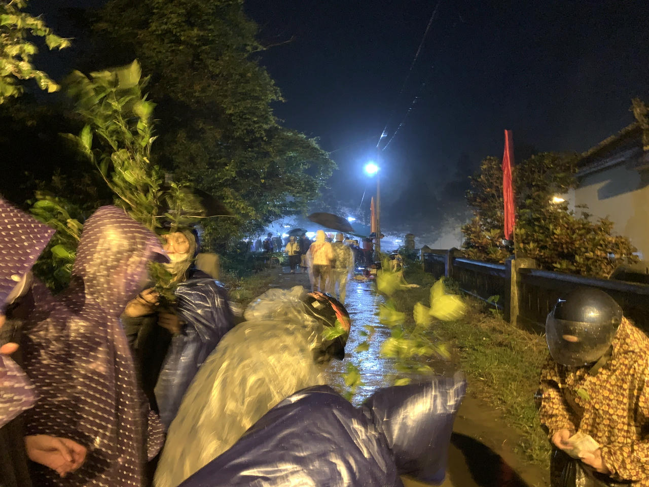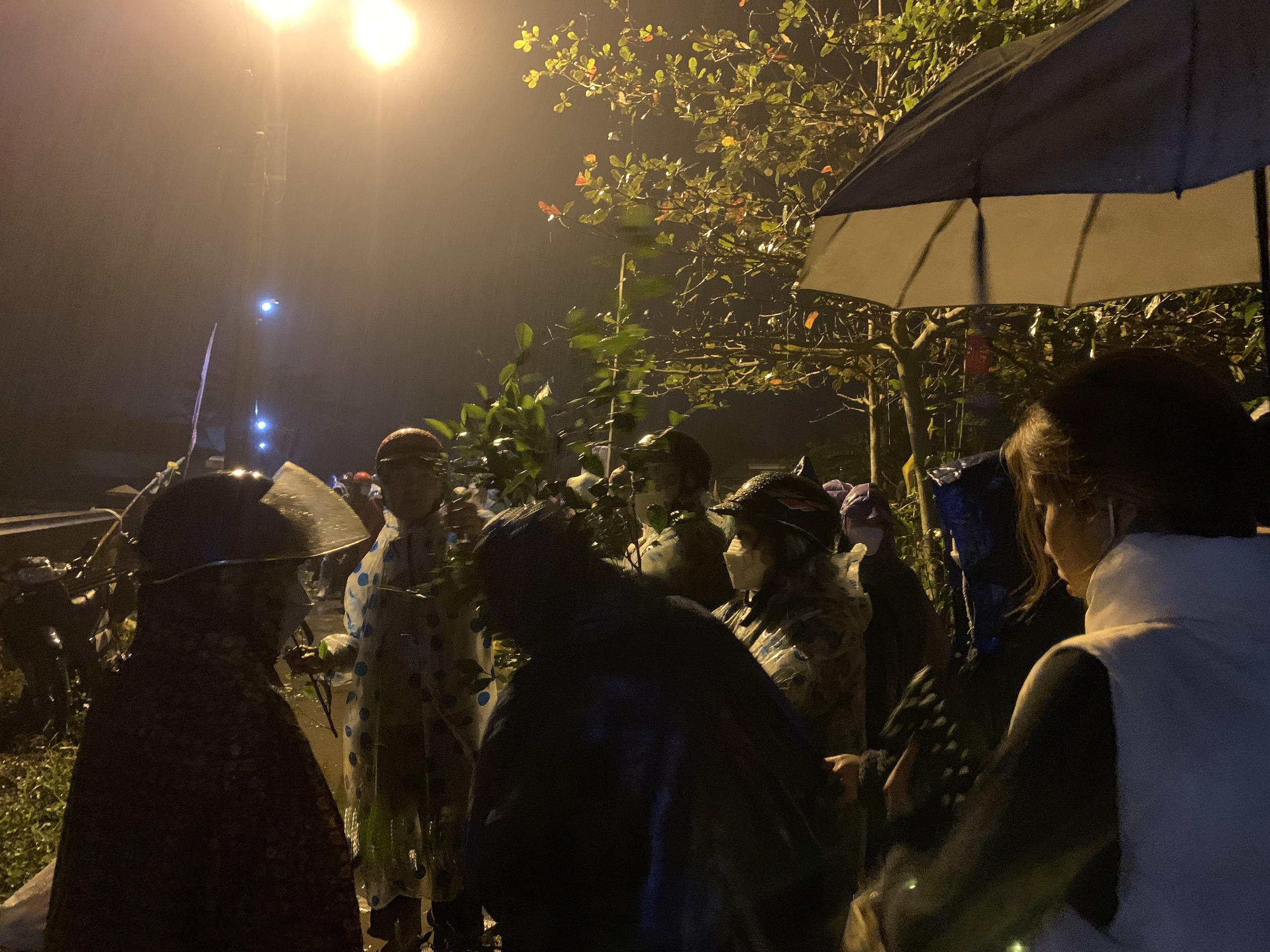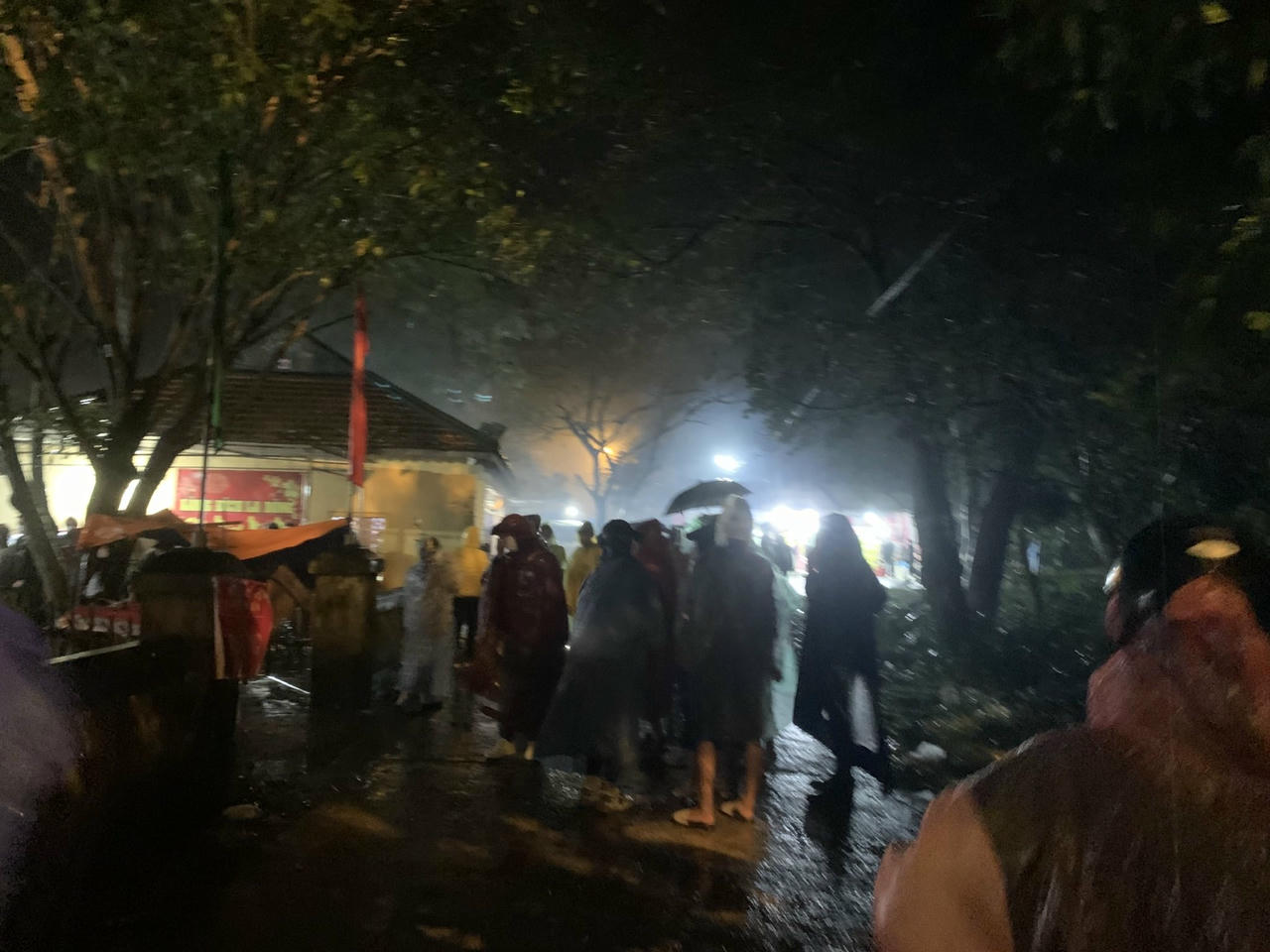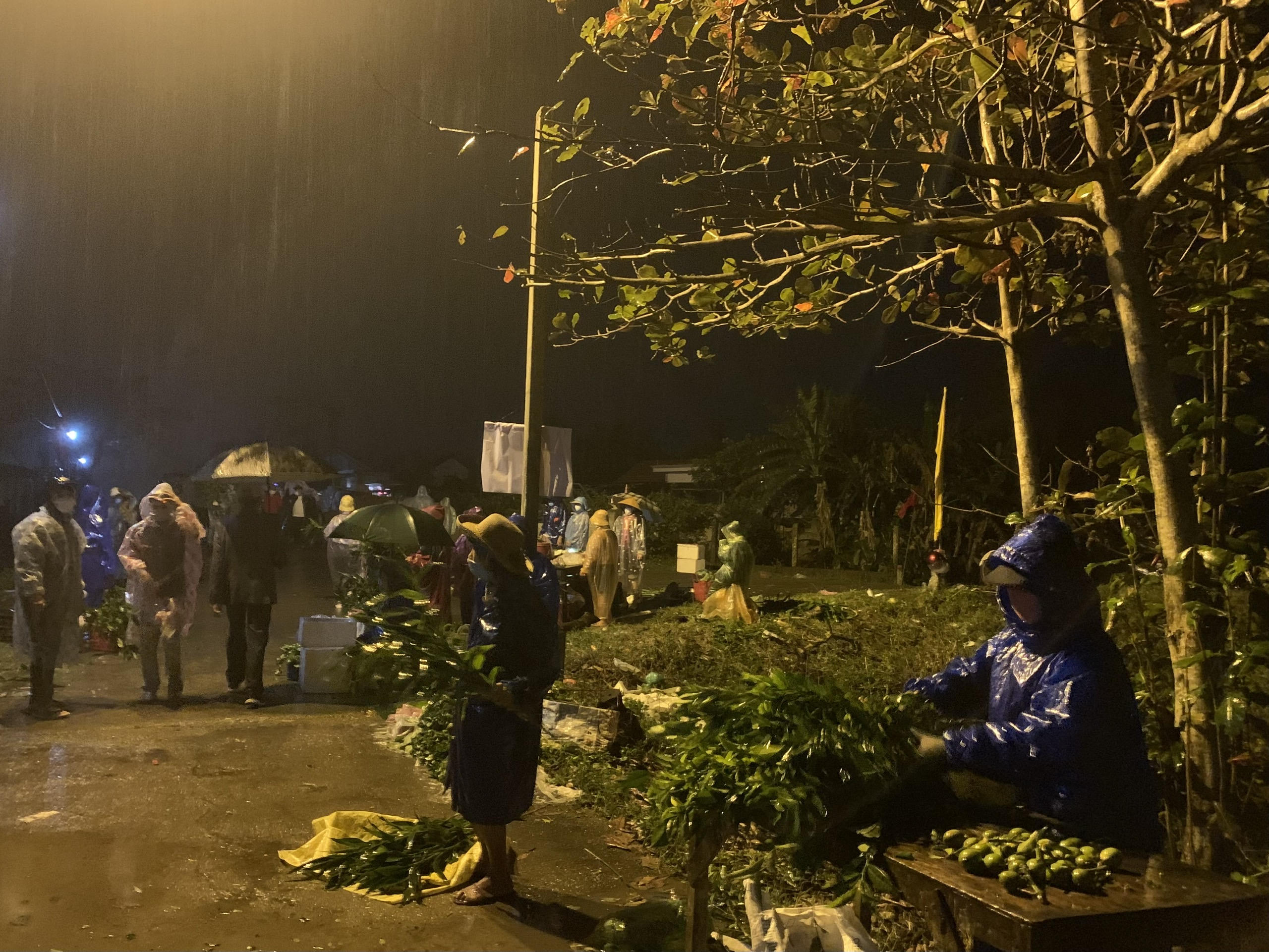 Người dân đội mưa đi chợ Đình Bích La. |