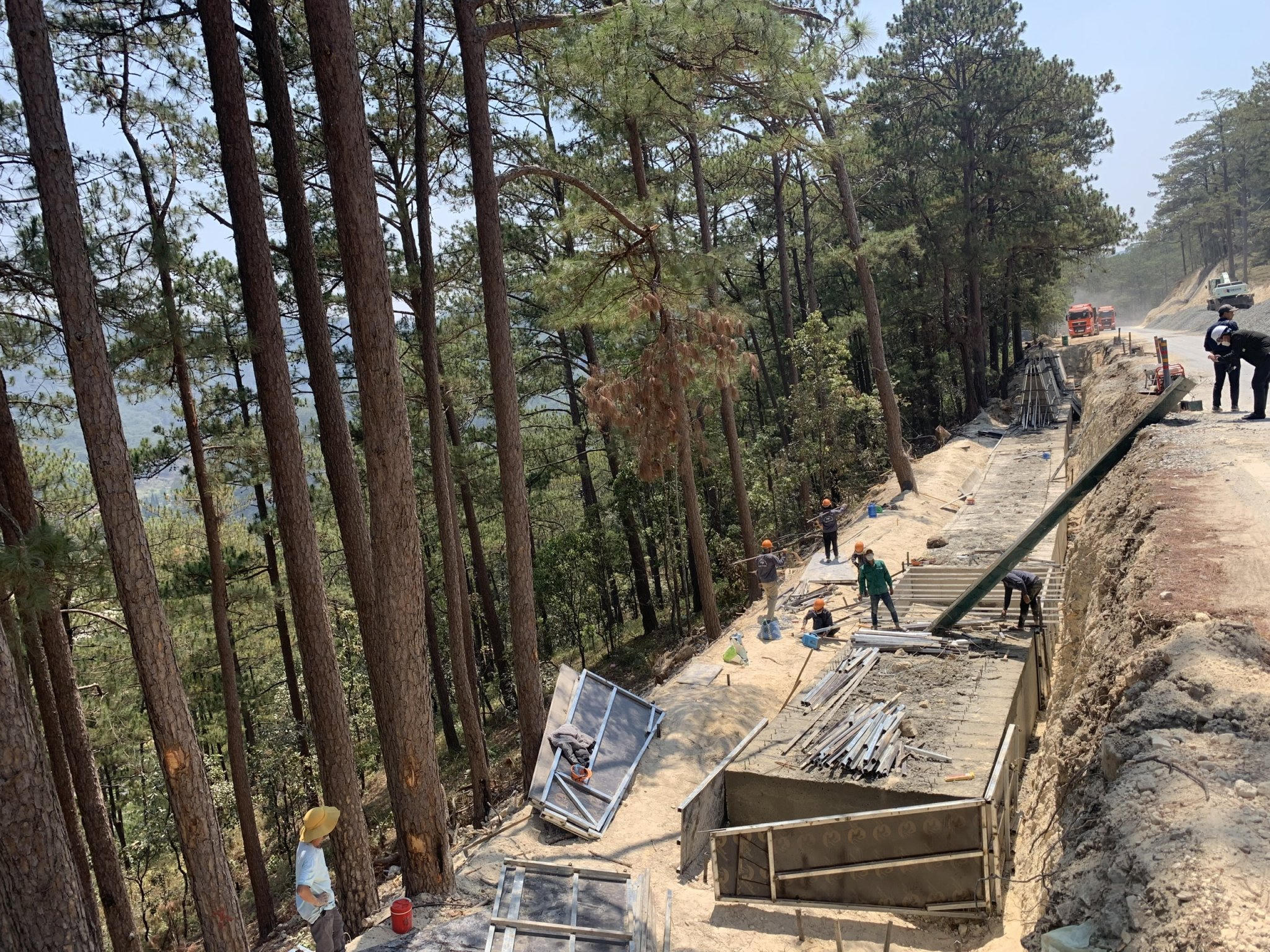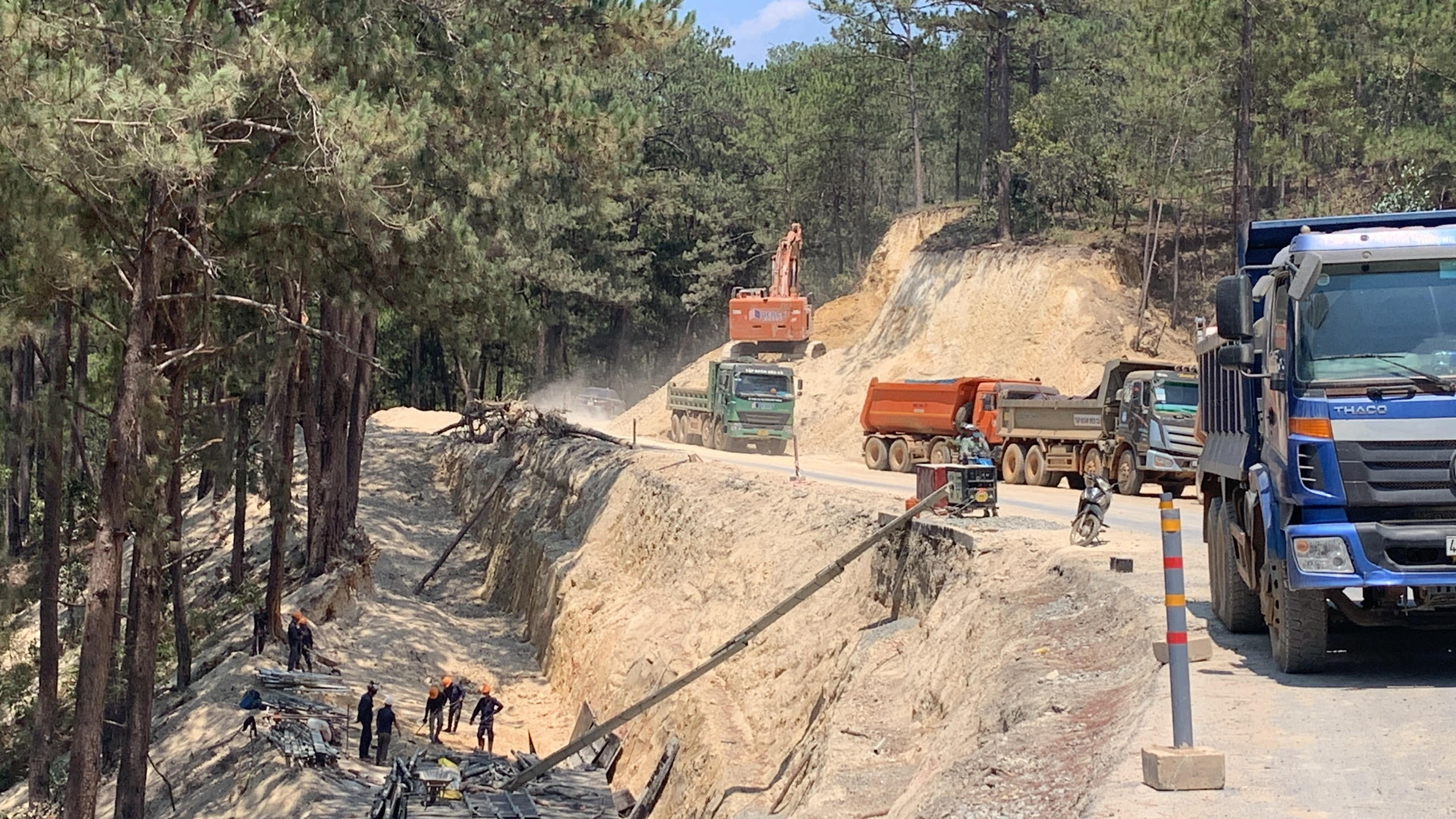 Không khí hối hả trên công trường mở rộng đèo Prenn. |