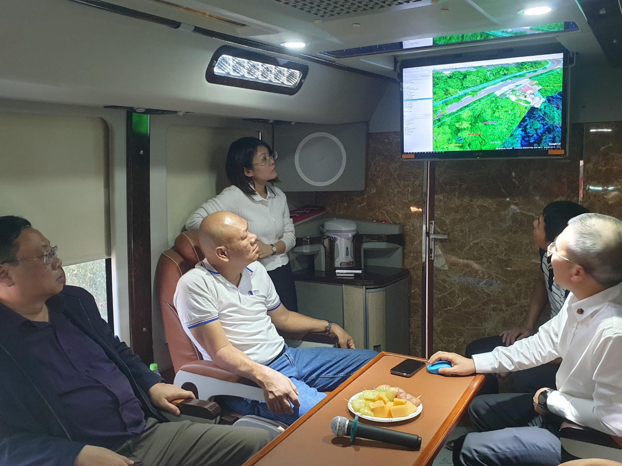 Với thiết bị LiDAR- nhà thầu thi công dễ dàng giám sát, đánh giá quá trình thi công qua màn hình trên phòng họp di động di chuyển dọc đèo Prenn. |