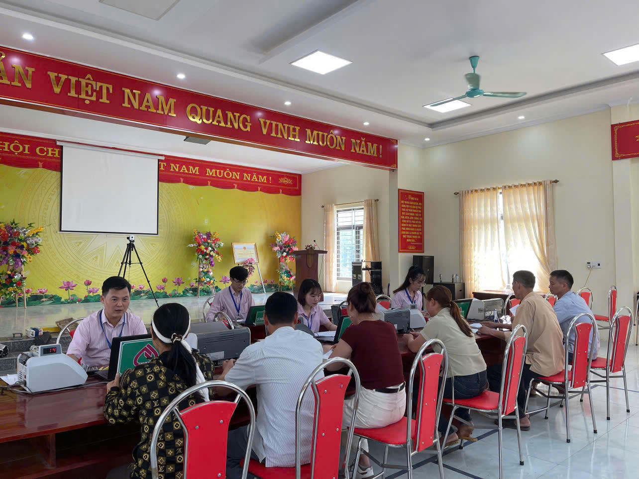 Điểm giao dịch xã của NHCSXH Lục Yên giải ngân tháng 4/2025. |
