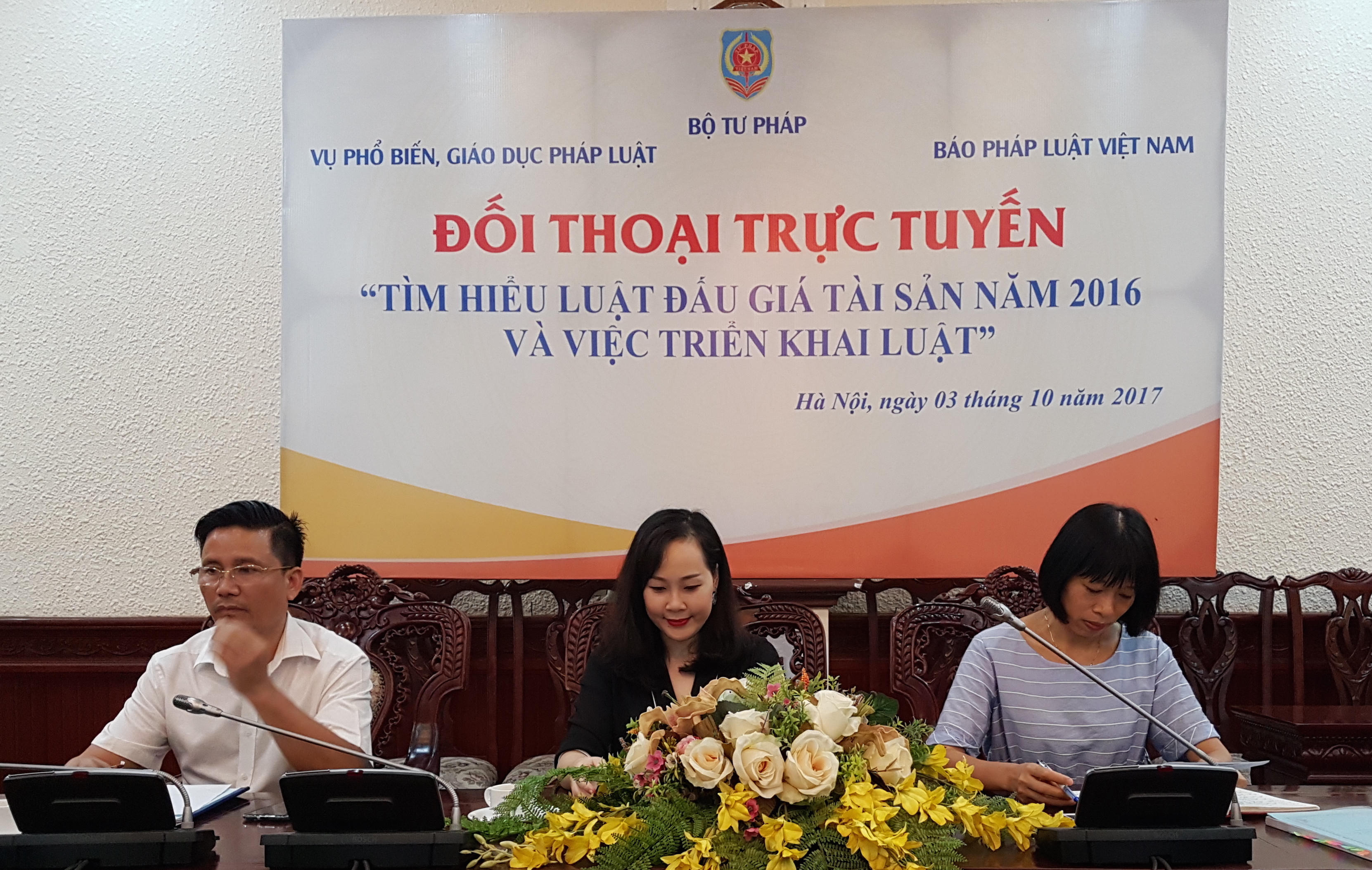 Trong khoảng thời gian từ 9h đến 10h 30 sáng nay (3/10), hai vị khách mời của Chương trình là bà Nguyễn Thị Mai, Phó Cục trưởng Cục Bổ trợ Tư pháp, Bộ Tư pháp và ông Quản Văn Minh, Đấu giá viên, Chủ tịch Hội Đấu giá viên Thành phố Hà Nội đã trực tiếp giải đáp nhiều câu hỏi của độc giả về những quy định mới của Luật Đấu giá tài sản năm 2016 cũng như quá trình đưa Luật Đấu giá tài sản vào cuộc sống.