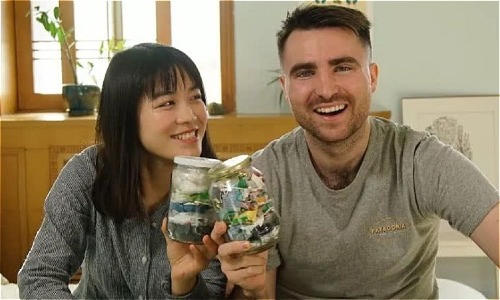 Cô gái Yu Yuan và bạn trai chỉ tạo ra lượng rác đủ nhét trong hai cái lọ sau 3 tháng. Ảnh:wenxuecity. |
