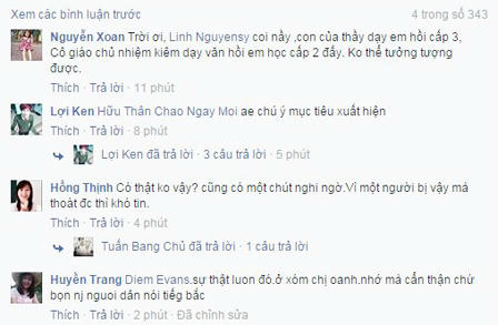 Facebook Huyền Trang khẳng định: "Sự thật luôn đó, ở xóm chị Oanh, nhớ cẩn thận chứ bọn ni người dân nói tiếng Bắc. Nhiều bạn còn cho biết đó là con thầy cô giáo chủ nhiệm...."