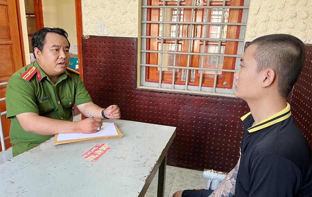 Đối tượng Nguyễn Chí Tâm khai nhận hành động phạm tội tại Cơ quan Công an. |
