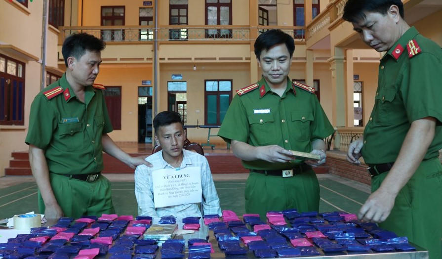 (PLVN) - Công an huyện Điện Biên Đông, tỉnh Điện Biên vừa bắt quả tang 1 đối tượng người dân tộc Mông đang có hành mua bán trái phép 2 bánh heroin và 24.000 viên ma túy tổng hợp.