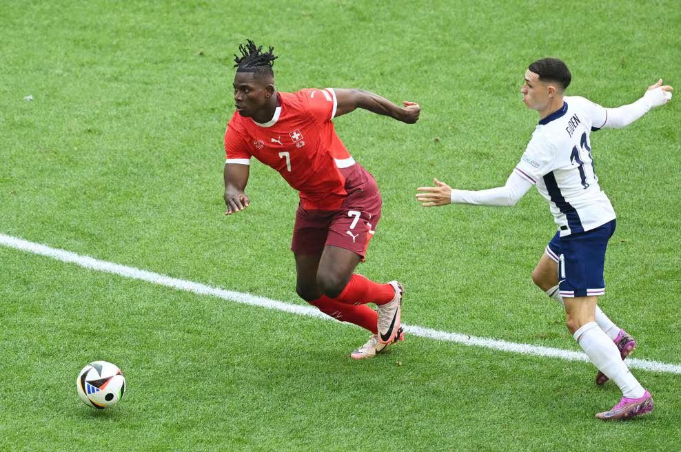 Embolo đã có nhiều cơ hội trước khung thành đội tuyển Anh. Cú đánh đầu của anh đã bị Konsa truy cản và không thể thắng được thủ thành Pickford.