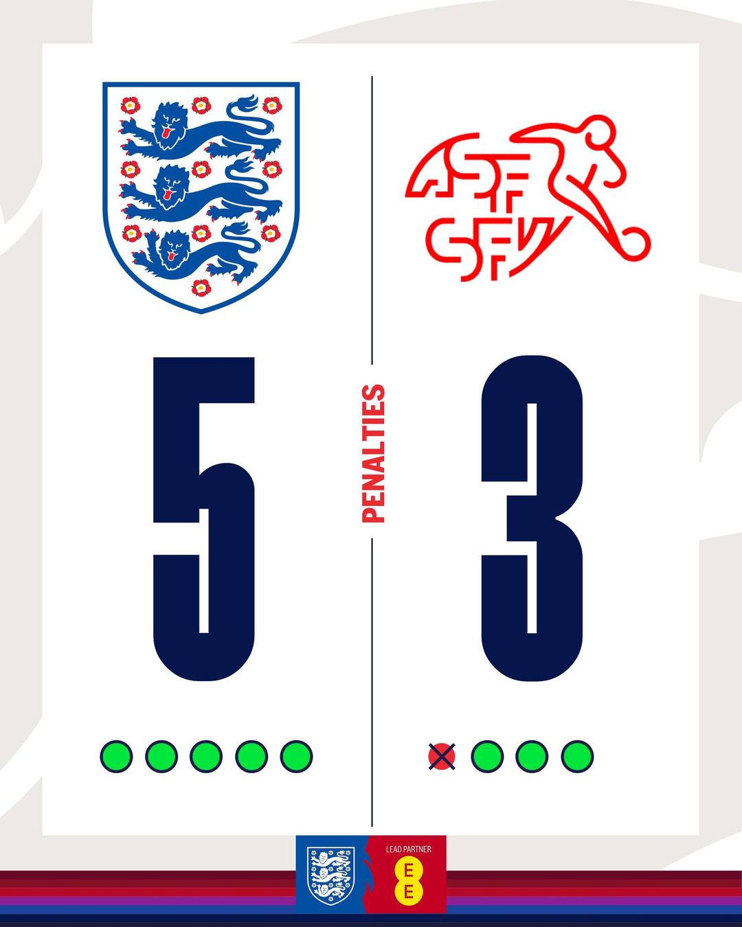 Anh đã thắng Thuỵ Sĩ trên chấm 11 mét, lọt vào bán kết.