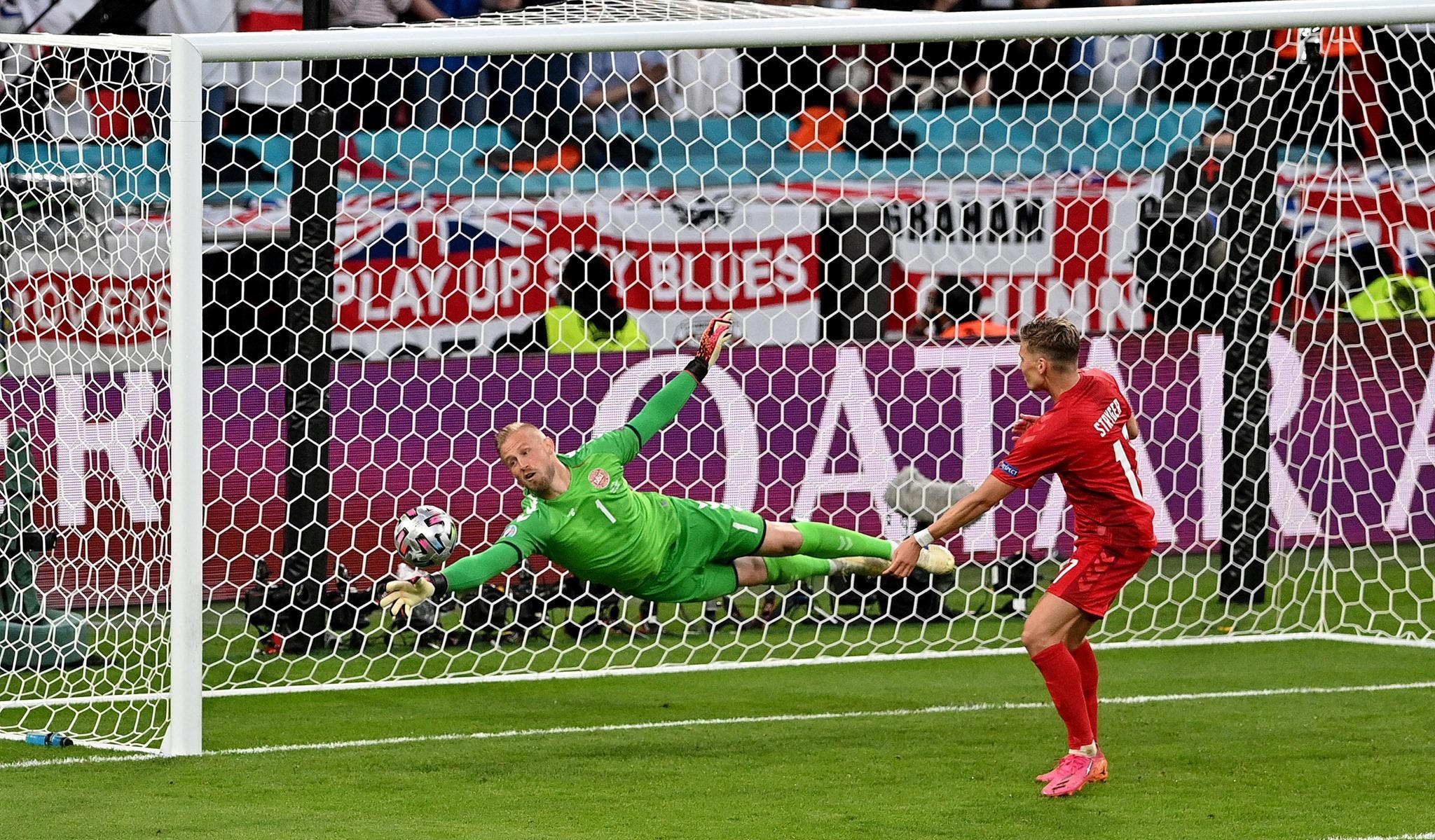 Phút 73, suýt chút nữa đã có bàn thắng dành cho ĐT Anh sau tình huống tạt bóng bị lỗi của Mount và trái bóng hướng thẳng về phía khung thành Đan Mạch. Rất may là Schmeichel đã bay người để cản phá thành công.