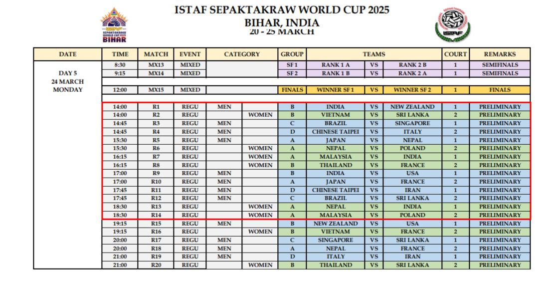 Lịch thi đấu trong ngày 25/3 theo giờ Ấn Độ (Giờ Việt Nam +1h30) |
