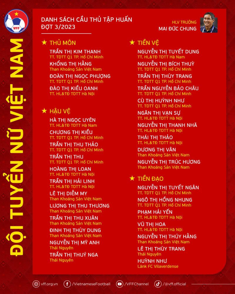 Ngày 22/5, đội tuyển nữ Việt Nam hội quân tại Trung tâm Đào tạo Bóng đá trẻ Việt Nam để bắt đầu giai đoạn tập luyện tiếp theo, hướng đến Vòng chung kết bóng đá nữ thế giới 2023 tại New Zealand và Australia vào tháng 7 tới đây.