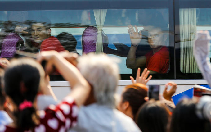 Ngay sau đó, các cầu thủ nhanh chóng lên xe ra sân vận động Thống Nhất (quận 10) giao lưu với người hâm mộ TP HCM. Hàng trăm cổ động viên lục tục hò reo, tìm bắt tay cầu thủ U23.