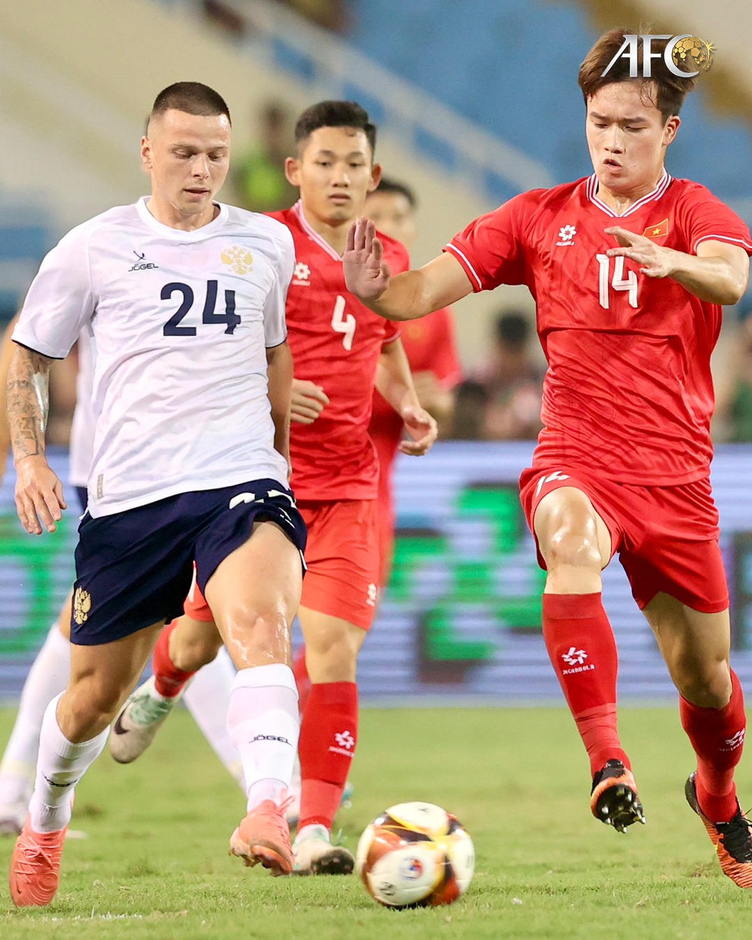 Phút 24, Văn Lâm đã cản được cú đánh đầu của Piniaev. Tuy nhiên sau đó, lưới của đội tuyển Việt Nam đã phải rung lên cũng từ một cú đánh đầu ở tư thế không ai kèm của Kuziaev.