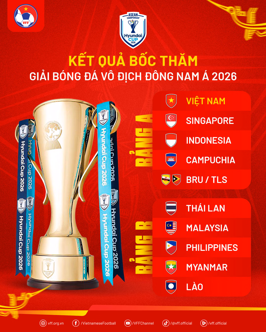 Đội tuyển Việt Nam cùng bảng với đối thủ duyên nợ Indonesia tại AFF Cup 2026.