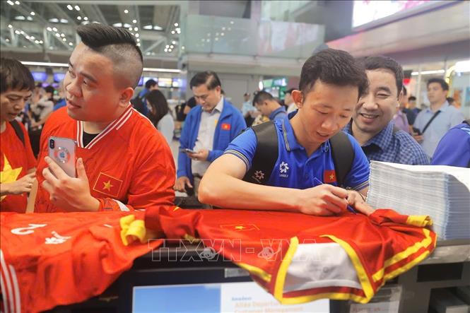 (PLVN) - Trưa 6/1, các cầu thủ đội tuyển Việt Nam đã ra sân bay Suvarnabhumi (Bangkok, Thái Lan) để lên đường về nước sau khi giành ngôi vô địch ASEAN CUP 2024. Dự kiến đội tuyển sẽ về đến sân bay Nội Bài (Hà Nội) vào 14h30 cùng ngày với lễ đón trọng thể.