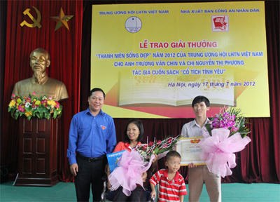 TW Hội LHTN Việt Nam hôm qua trao giải thưởng “Thanh niên sống đẹp” cho vợ chồng anh Trương Văn Chín và chị Nguyễn Thị Phương (Nghệ An) tác giả cuốn tự truyện “Cổ tích tình yêu”.