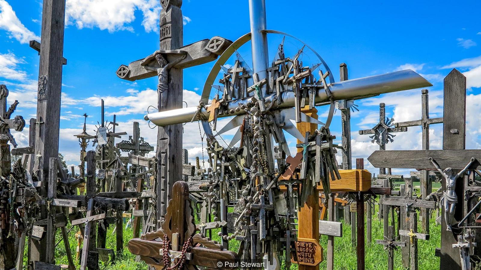 Đi qua ngọn đồi này, người ta có cảm giác như gò đất này bị uốn cong do chịu sức nặng của hàng ngàn cây thánh giá. Khi gió thổi qua cánh đồng Siaulai thôn dã, những chuỗi hạt lộng lẫy đập leng keng vào những cây thánh giá bằng kim loại và bằng gỗ, khiến không gian vang động những tiếng hợp âm ma quái và đầy huyền bí.