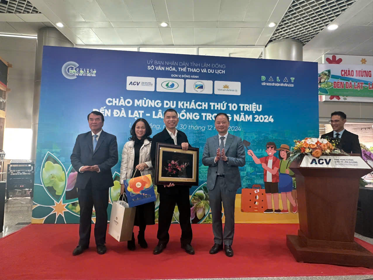 Theo đó, vị khách thứ 10 triệu đến Lâm Đồng năm 2024 là anh Nguyễn Đăng Dũng đến từ Hà Nội trên chuyến bay VN1573, hạ cánh xuống sân bay quốc tế Liên Khương lúc 8h50 sáng 30/12.