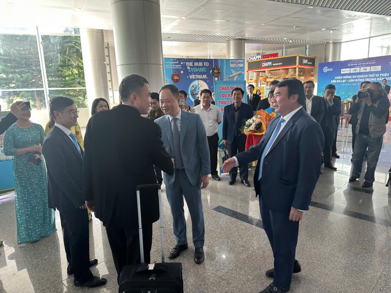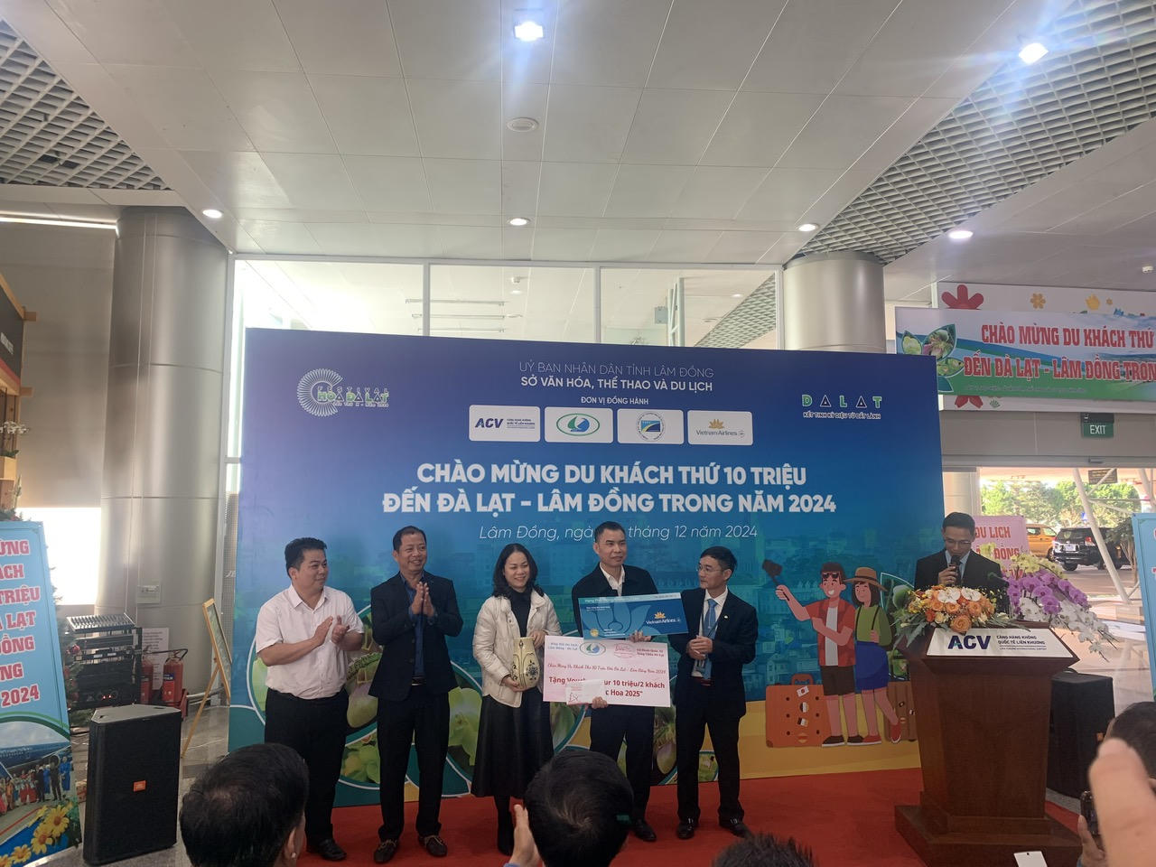 Đông đảo các ban, ngành tỉnh Lâm Đồng tại lễ đón vị khách thứ 10 triệu. |