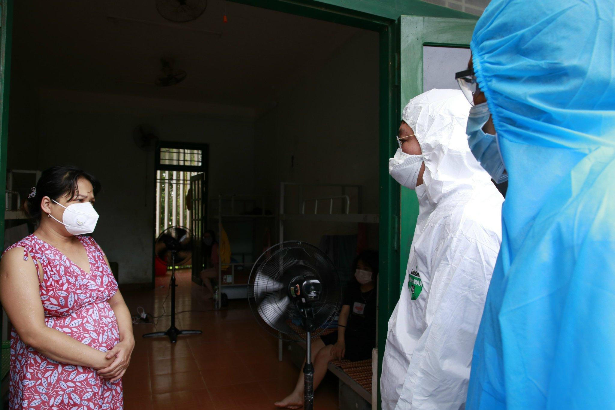 | Thăm hỏi người dân trở về tại khu cách ly tập trung. |