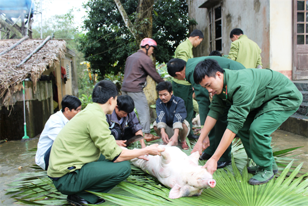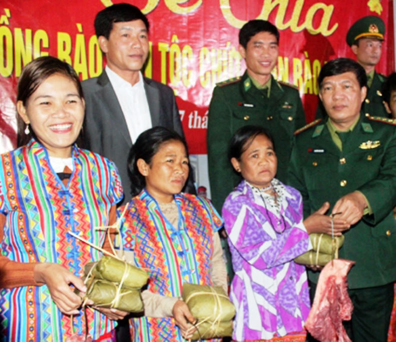 BĐBP cùng giết lợn, gói bánh chưng sau đó chia phần cho bà con. Tết năm nay, 41 hộ, 145 khẩu người Chứt ở Rào Tre được tặng 41 suất quà, mỗi suất gồm 2 kg thịt lợn, 2 cái bánh chưng và gạo.