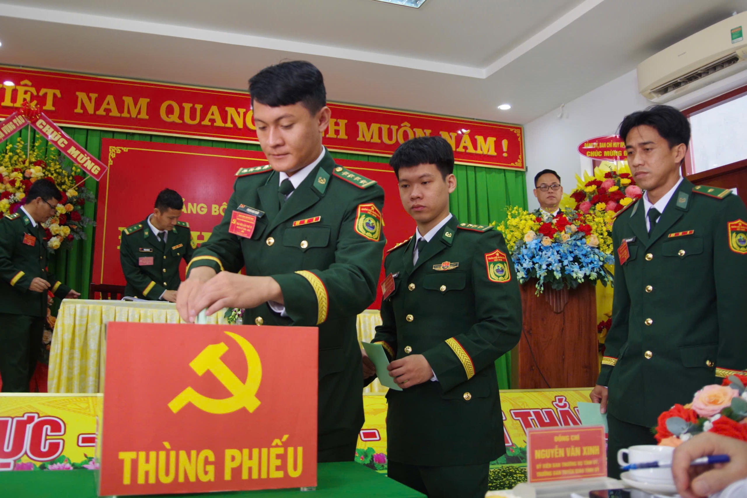 Các đảng viên bỏ phiếu bầu Ban Chấp hành Đảng bộ Đồn Biên phòng Bến Đá nhiệm kỳ 2025-2030 |