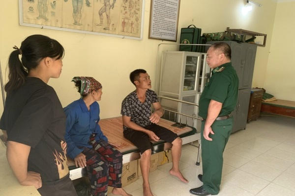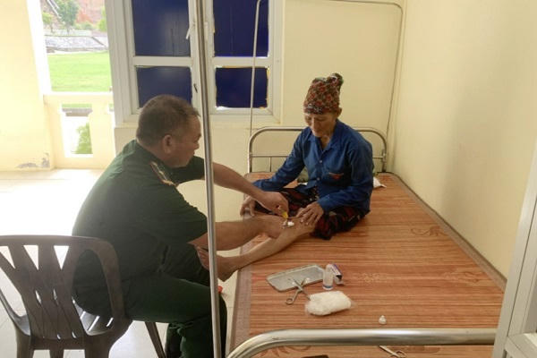 ![]() Cán bộ Quân y Đồn Biên phòng Đảo Trần chăm sóc sức khoẻ cho 1 trong 3 ngư dân. |