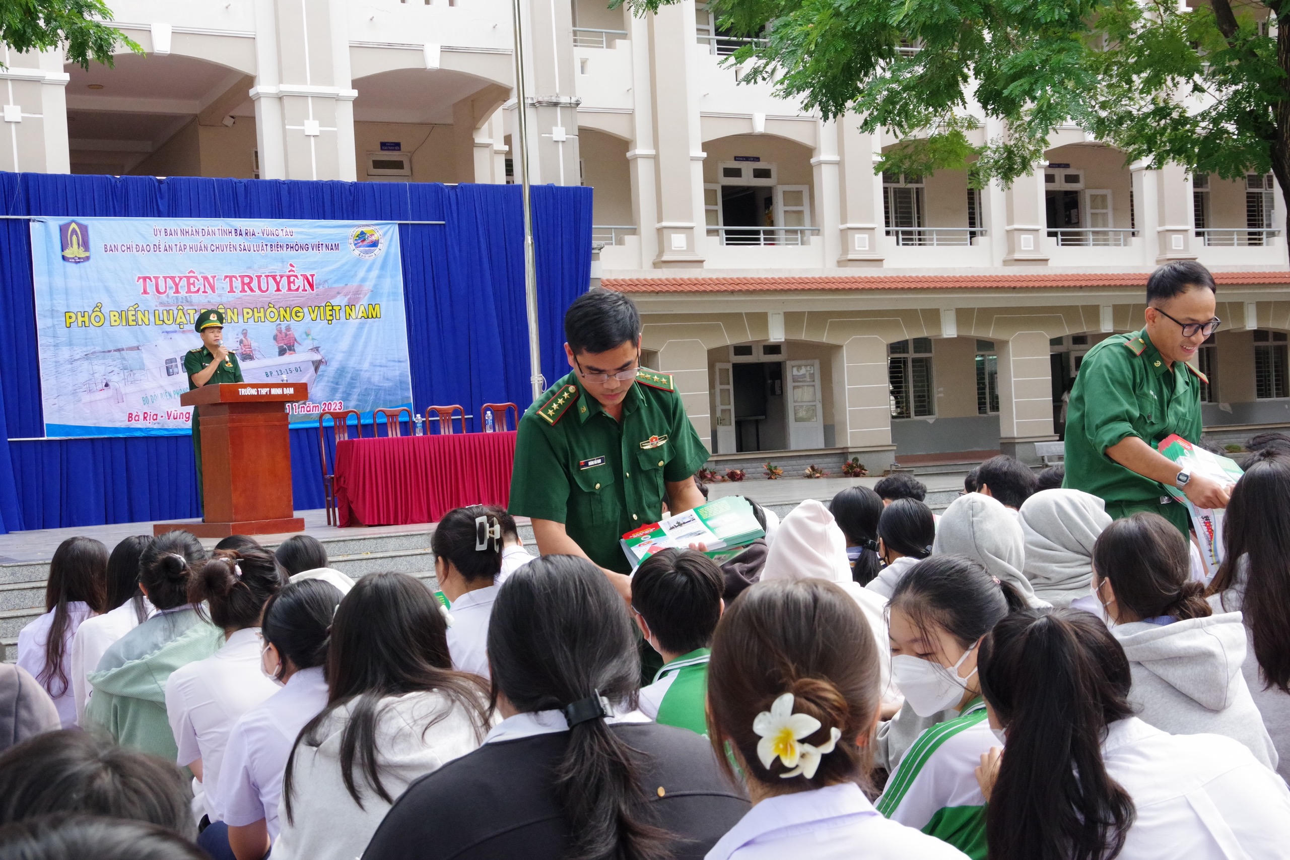 Ngay trong ngày đầu diễn ra cuộc thi, cán bộ chiến sĩ Đồn Biên phòng Phước Tỉnh đã tuyên truyền giới thiệu chi tiết một số nội dung cơ bản của Luật Biên phòng Việt Nam và Nghị định số 106/2021/NĐ-CP ngày 6/12/2021 của Chính phủ quy định chi tiết một số điều Luật Biên phòng Việt Nam, một số quy định pháp luật liên quan đến biên giới và hoạt động của BĐBP đồng thời hướng dẫn cách thức đăng ký, tham gia cuộc thi đến tập thể giáo viên, học sinh của Trường THPT thông Minh Đạm, huyện Long Điền, tỉnh Bà Rịa-Vũng Tàu.