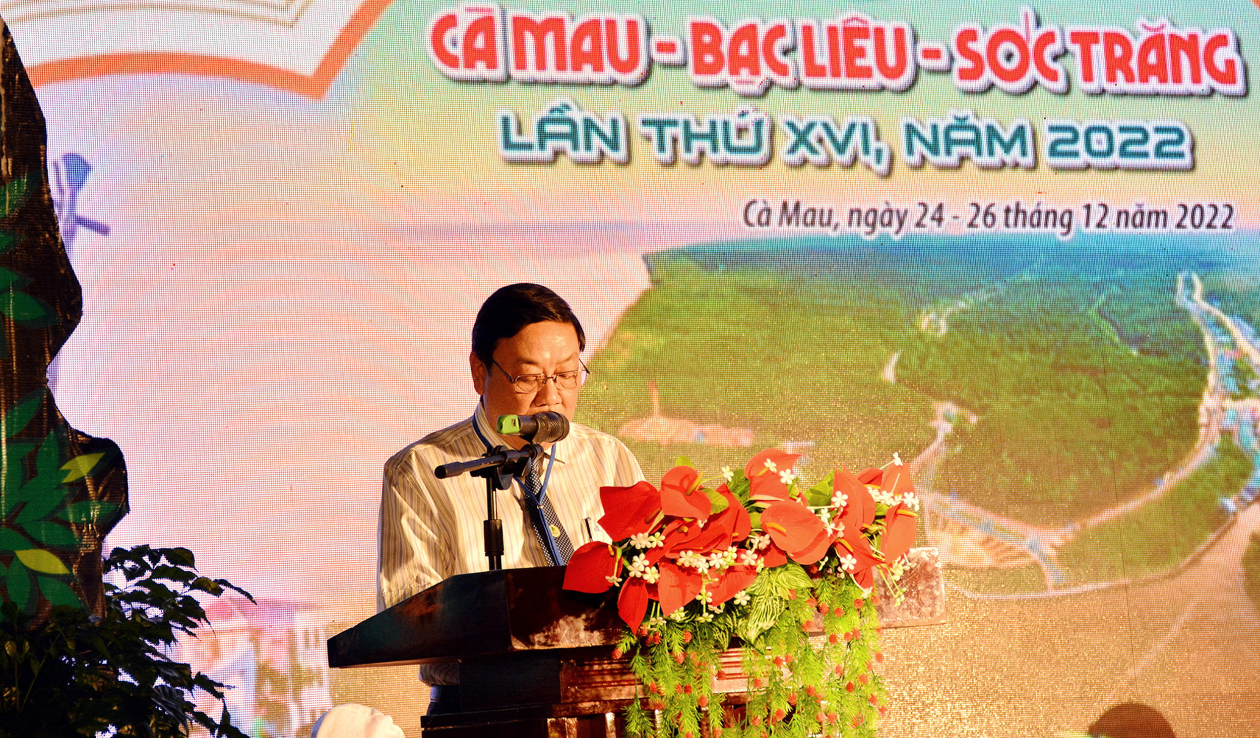 Ông Trần Hiếu Hùng – Giám đốc Sở Văn hóa, Thể thao và Du lịch tỉnh Cà Mau, phát biểu khai mạc. |