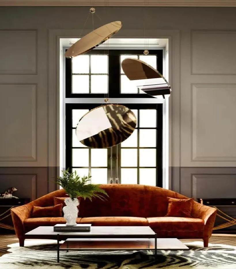 Những chiếc đèn được làm từ đồng thau với lớp phủ sáng bóng như gương mang âm hưởng của phong cách Art Deco (trường phái nghệ thuật mang tính chiết trung).
