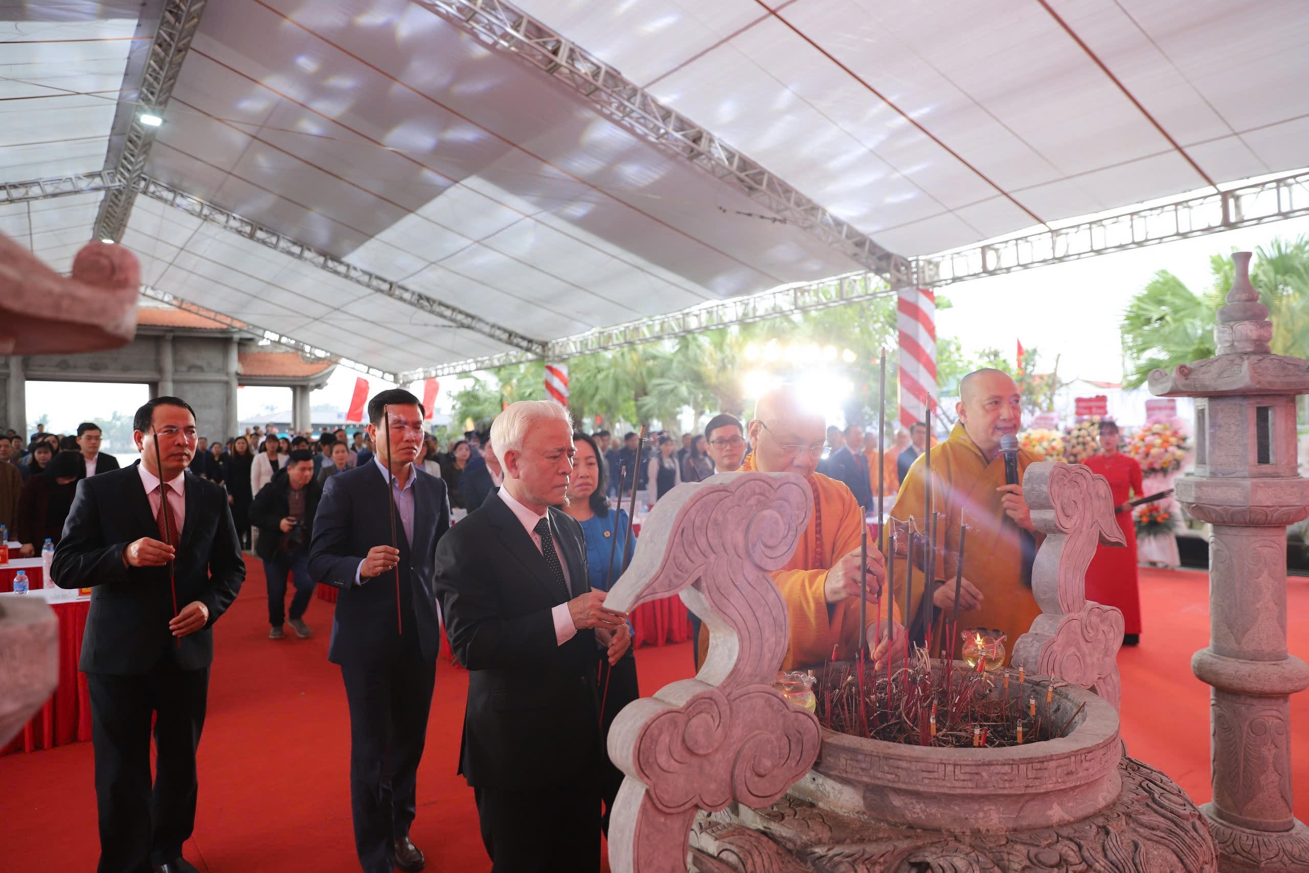 Các đại biểu thành kính bày tỏ lòng tri ân tới Chủ tịch nước Tôn Đức Thắng. |