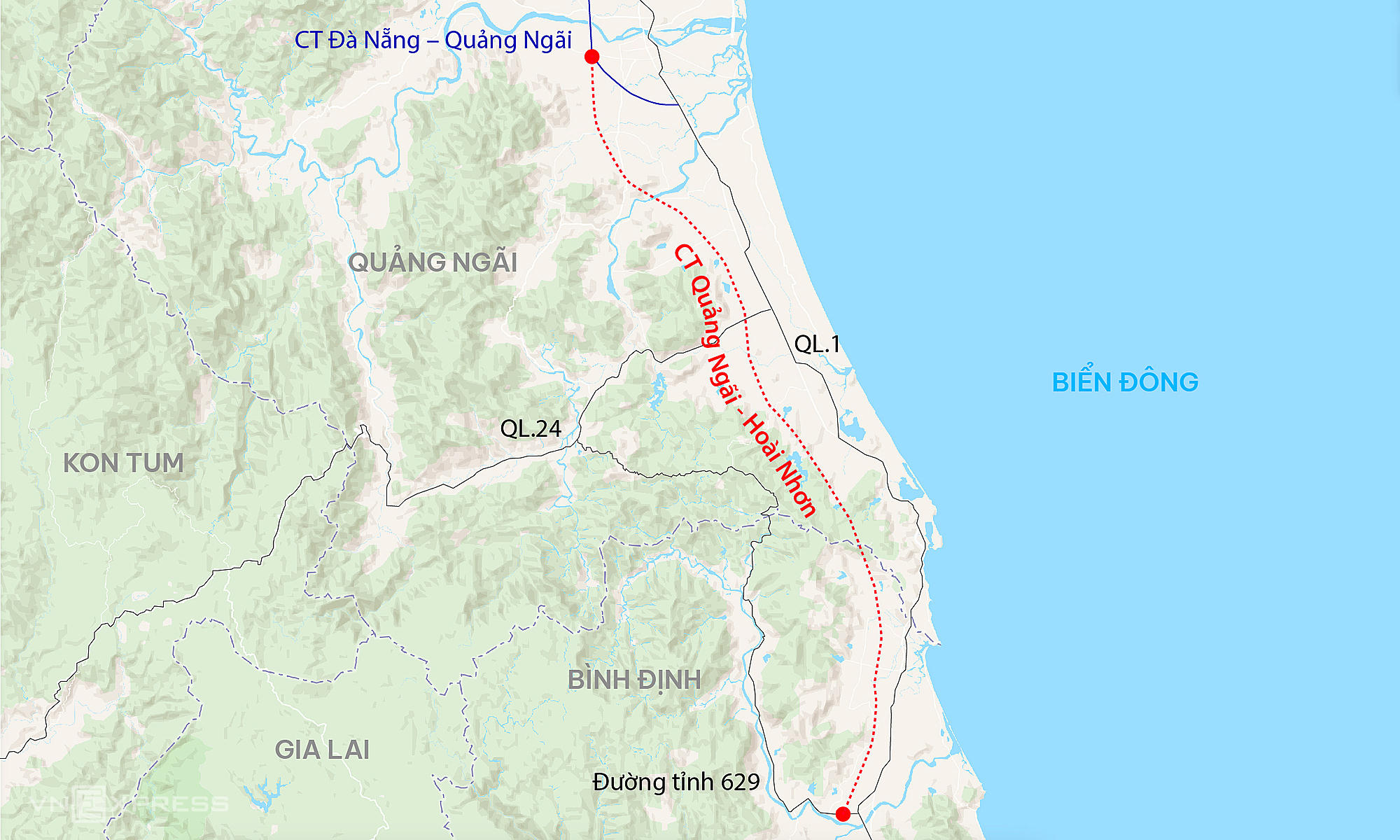 Vị trí cao tốc Quãng Ngãi - Hoài Nhơn trên bản đồ. |