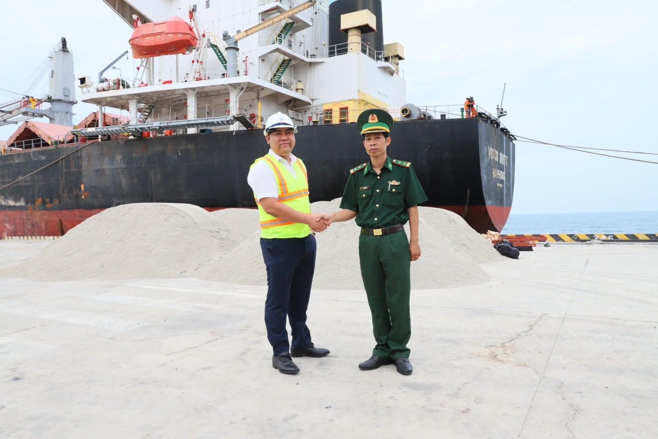 Với tải trọng trên 50 ngàn tấn, đây là lần đầu tiên Cảng Cà Ná đón tàu có tải trọng lớn làm thủ tục vận chuyển cát đi Singapore.