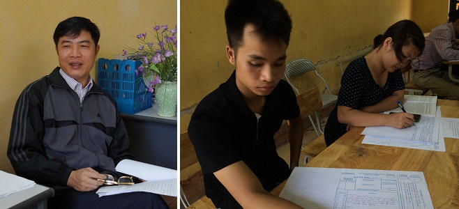 Thanh niên này thản nhiên vào phòng thi ngồi vào hàng ghế cuối cùng, cạnh cửa ra vào, sau đó đi lên lấy tờ giấy thi để về làm bài. Qua quan sát, nam thanh niên này ghi tên “Đặng Bá Sướng, sinh ngày 10/8/1965, nơi sinh Hà Nội, hộ khẩu thường trú Uy Nỗ, Đông Anh, Hà Nội. Số báo danh: số 03. Bài thi môn: Luật Đất đai” vào giấy thi và làm bài.