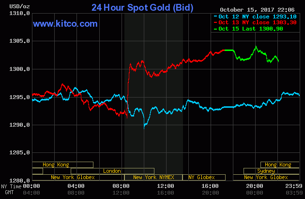 Giá vàng giao trong tháng 12 trên sàn giao dịch hàng hoá New York tăng 6,86 USD, tương đương 0,54% lên mức 1.303,4 USD/ounce. Tính chung cả tuần trước, giá vàng kỳ hạn đã tăng 2,03%.