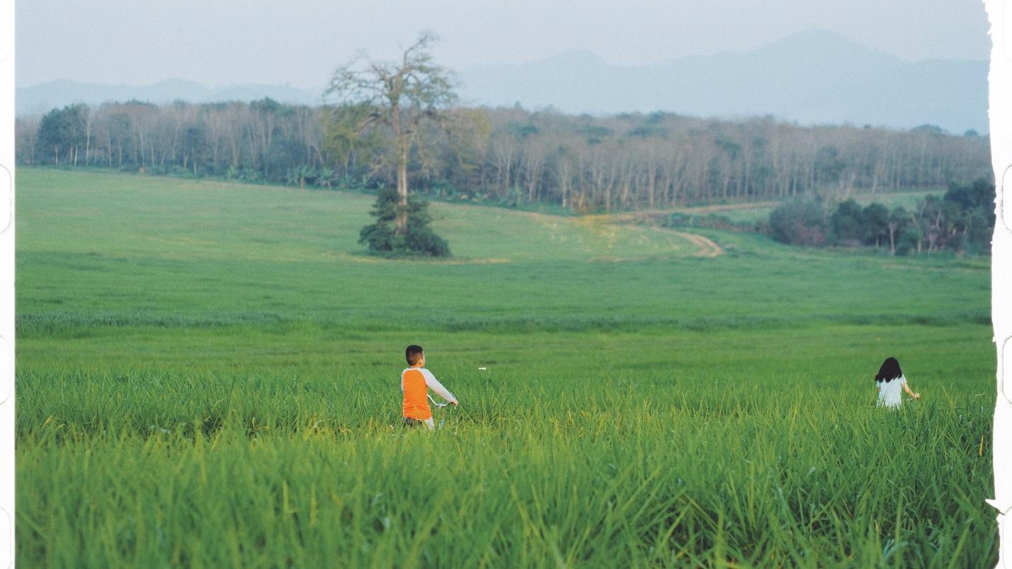 Trên đường trở lại Hà Nội sau đợt nghỉ Tết, gia đình Tiểu Linh bất chợt bị hấp dẫn bởi cánh đồng cỏ mombasa rộng hút tầm mắt chạy ven đường mòn Hồ Chí Minh. Cả nhà xuống xe nghỉ chân, hai cô con gái chạy nhảy khắp nơi, thích thú với những khóm cỏ cao đến đầu gối xanh mướt trải dài như bất tận, con đường đất đỏ bazan chạy giữa màu xanh, cùng bầu không khí trong lành. Vốn thích chụp ảnh, chồng Tiểu Linh lấy máy ra chụp vợ và con gái. Một số kiểu ảnh cả gia đình là do cô em dâu đi cùng chụp hộ.